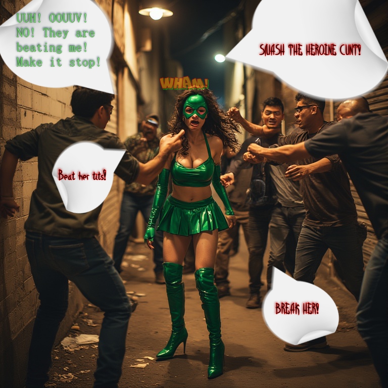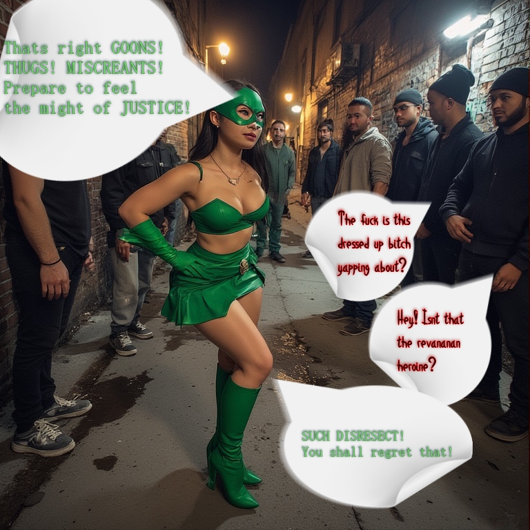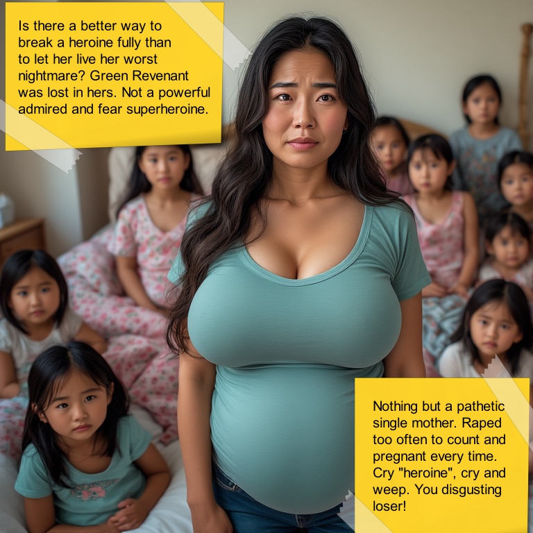 My beloved students: Since most of my archive was wiped out in that outrageous IT attack a few months ago, we will for the foreseeable future stick to stories that are short, to the point and illustrative of sexo-morphological principles! For this week: *sigh* Heroines. Always so overconfident. Arrogant even. The good doctor might have developed an anti-powerleech device if only Green Revenant would have worked with me, and if she had been the beneficiary of SEXO-MORPHOLOGY she might have found a way to fight back or even power through the power limiting field. Instead she ended up beaten, broken, humiliated, raped and a breeding mare. I even liked her. Would have helped her with my INCOMPARABLE genius… oh well.