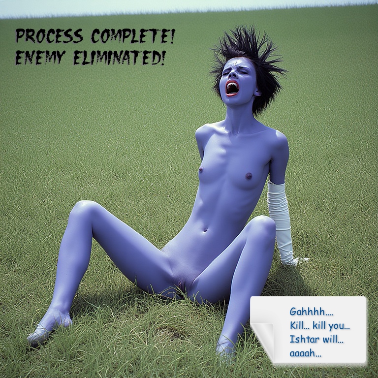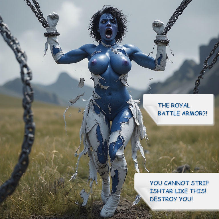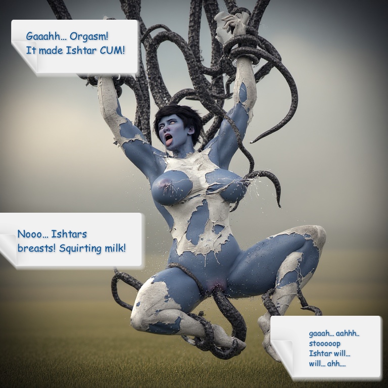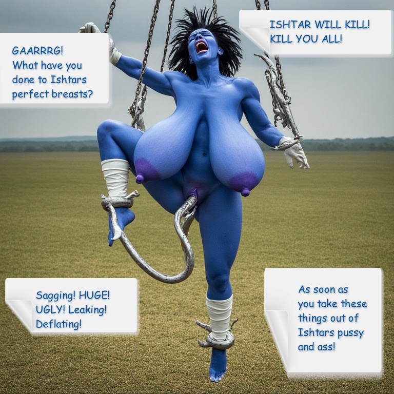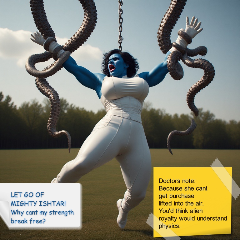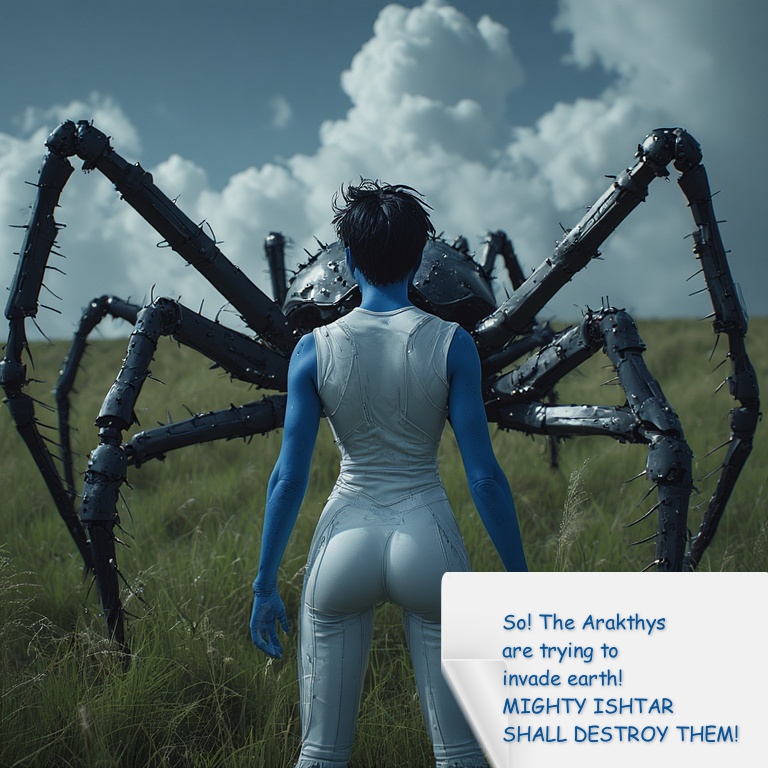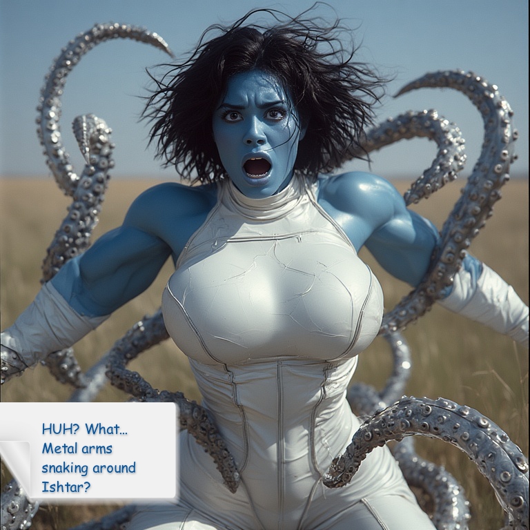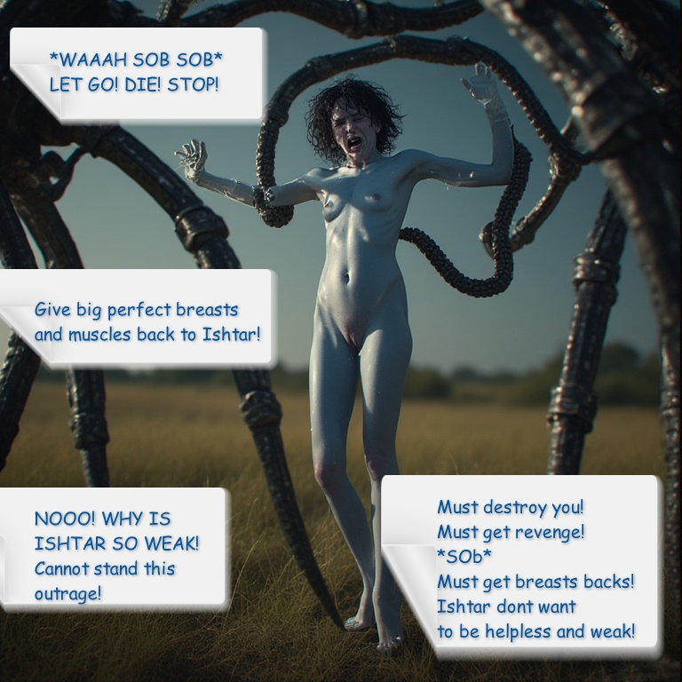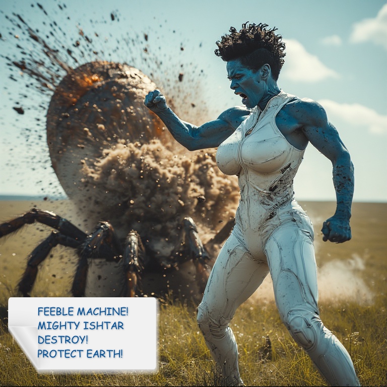 My beloved students: Since most of my archive was wiped out in that outrageous IT attack a few months ago, we will for the foreseeable future stick to stories that are short, to the point and illustrative of sexo-morphological principles! For this week: The mighty Ishtar is protecting her adopted home-planet Earth from alien invaders. Ah…. imagine if only she had had the doctors Sexomorphological help.She might have succeeded, but at least it looks like the aliens didn’t want Earth… only her…